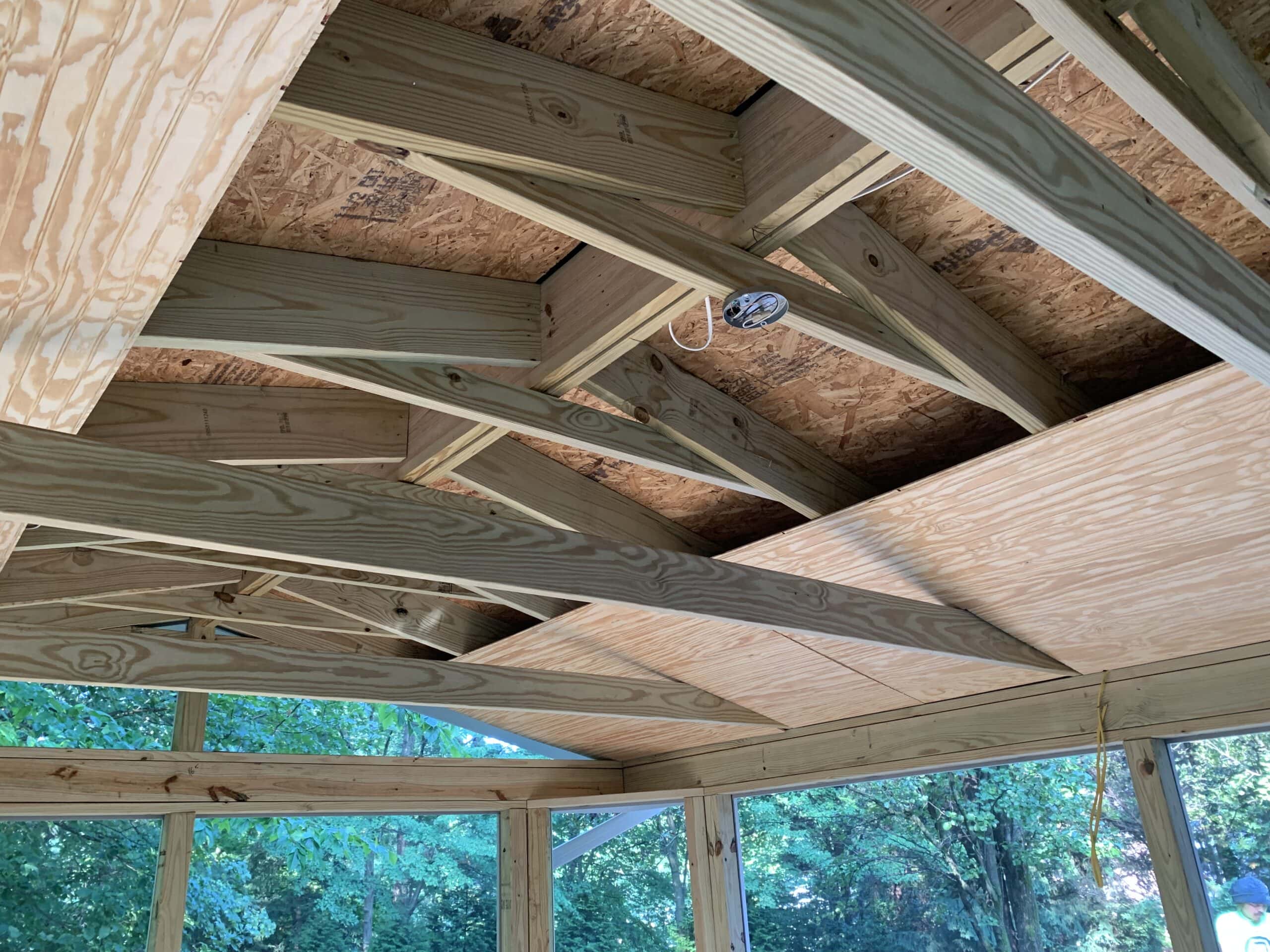 For the porch, we installed tongue-and-groove C-Select boards — not just for their natural look and feel, but to eliminate floor gaps and keep bugs out. It’s all the charm of wood, with the performance you need in a high-traffic outdoor space. Overhead, a custom two-tone ceiling finish gives the space a finished, cozy look. Recessed lighting and Infratech heaters were added to keep the porch comfortable even as the seasons shift.